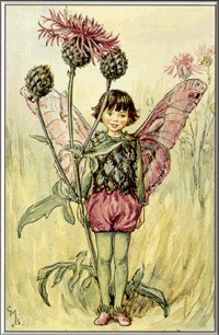 | Oh, please, little children, take note of my name: To call me a thistle is really a shame: I'm harmless Knapweed, who grows on the chalk, I never will prick you when out for your walk. Yet I should be sorry, yes, sorry indeed, To cut your small fingers and cause them to bleed; So bid me Good Morning when out for your walk, And mind how you pull at my very tough stalk. |