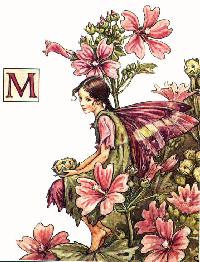 Mallow; here sit I Watching all the passers-by. Though my leaves are torn and tattered, Dust-besprinkled, mud-bespattered, See, my seeds are fairy cheeses, Freshest, finest, fairy cheeses! These are what and elf will munch For his supper or his lunch. Fairy housewives, going down To their busy market-town, Hear me wheedling: "Lady, please, Pretty lady, buy a cheese!" And I never find it matters That I'm nicknamed Rags-and-Tatters, For they buy my fairy cheeses, Freshest, finest, fairy cheeses! |