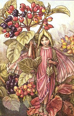 shoots are tipped with buds as dusty-grey As ancient pilgrims toiling on their way. Like Thursday's child with far to go, I stand, All ready for the road to Fairyland; With hood, and bag, and shoes, my name to suit, And in my hand my gorgeous-tinted fruit. |